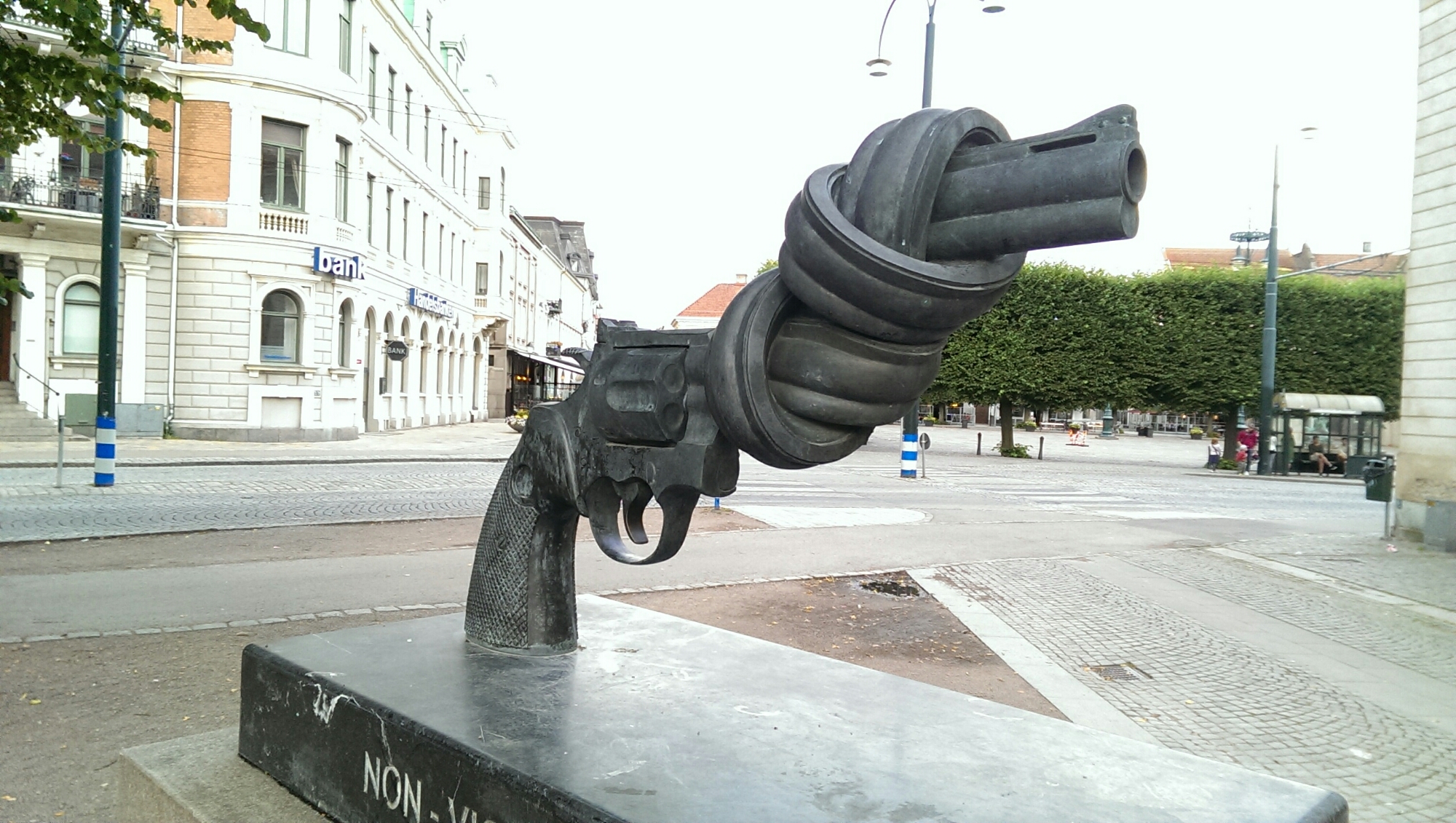 Neben dem Marktplatz ein Stück vom Park entfernt entdeckte ich eine der verknoteten Pistolen, von denen ich hier im Land bereits mehrere gesehen habe.