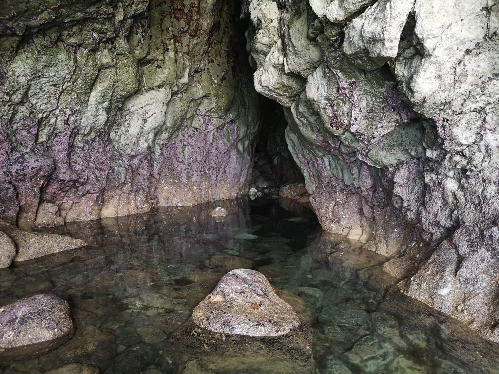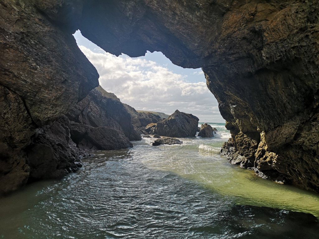 …und größerer Buchten auf mich, von denen manche durch die hohen Wellen ein ziemlich spektakuläres Naturschauspiel zeigten.