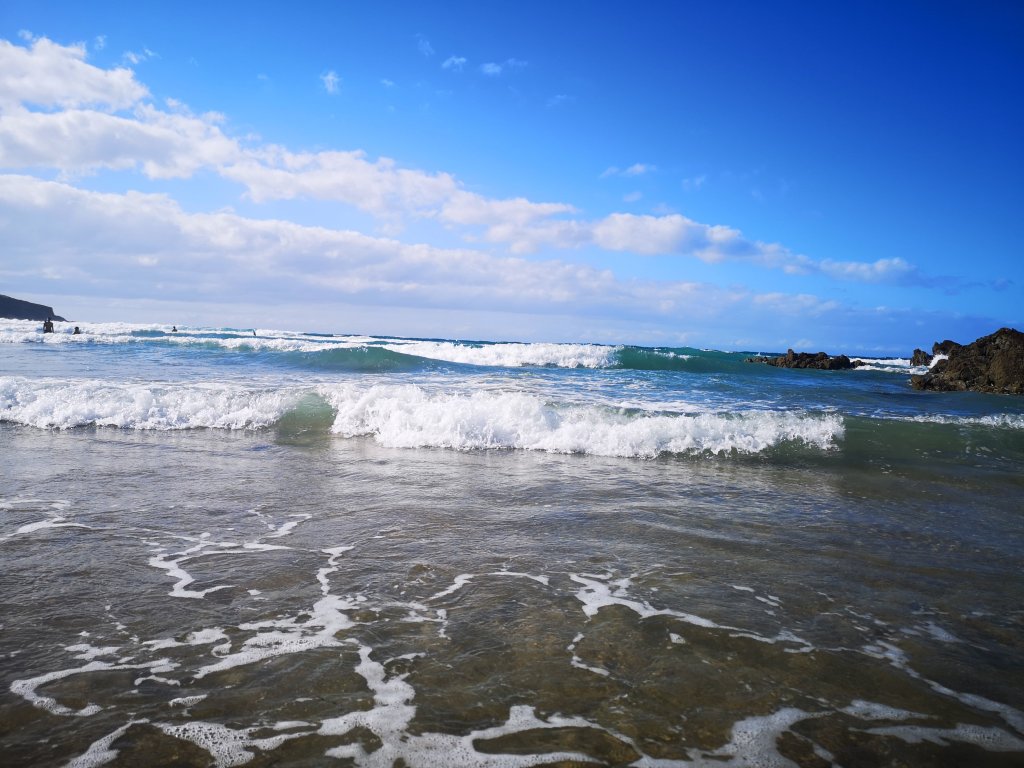 Denn die Wellen an diesem Strand waren wegen der einsetzenden Flut doch schon recht groß geworden.