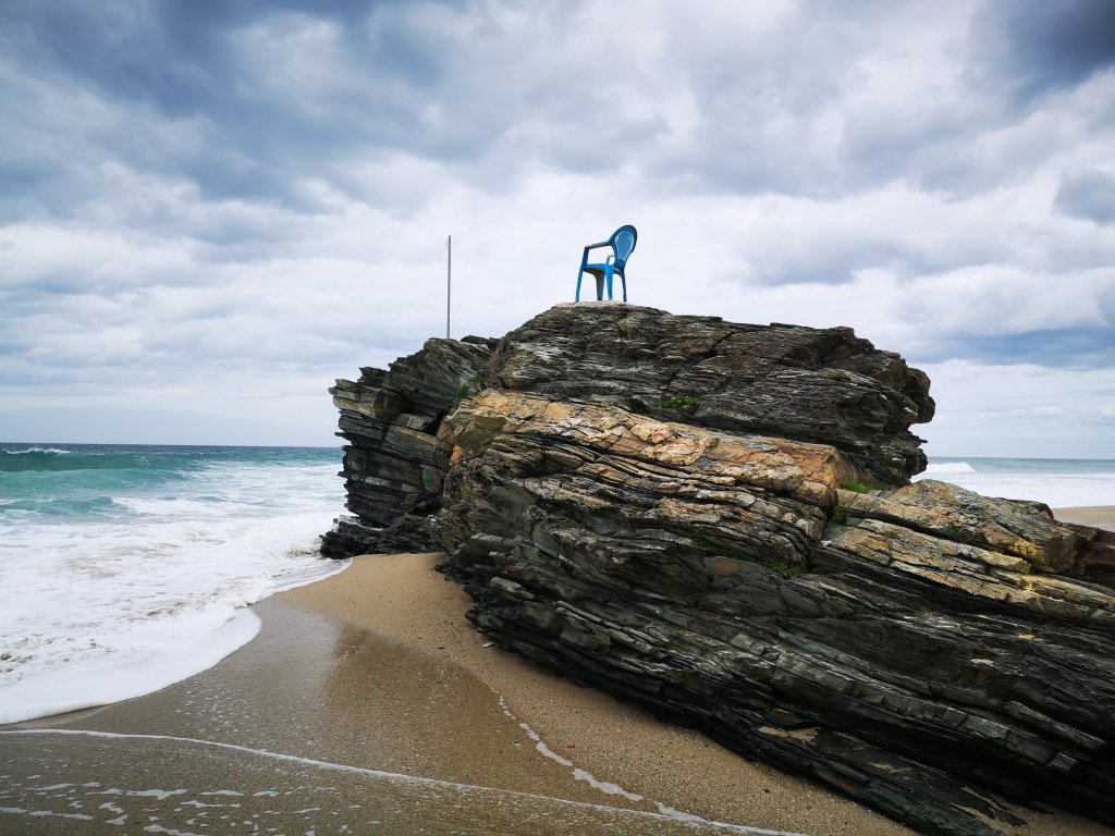 Das interressante an diesem Felsen ist, dass ein Stuhl auf ihm befestigt ist.