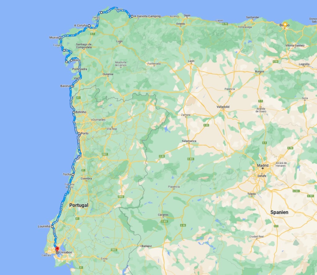 In Portugal führt die Route zunächst über Belinho nach Porto, wo dann der letzte Teil der Reise beginnt und uns schließlich bis nach Lissabon führen wird.